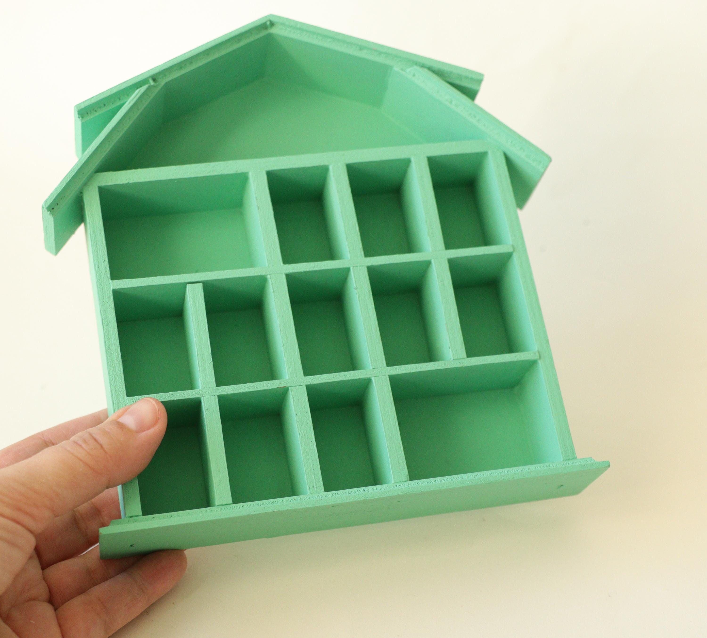 Handmade Mini Wooden Printer’s Tray: Crystal & Collectibles Shelf