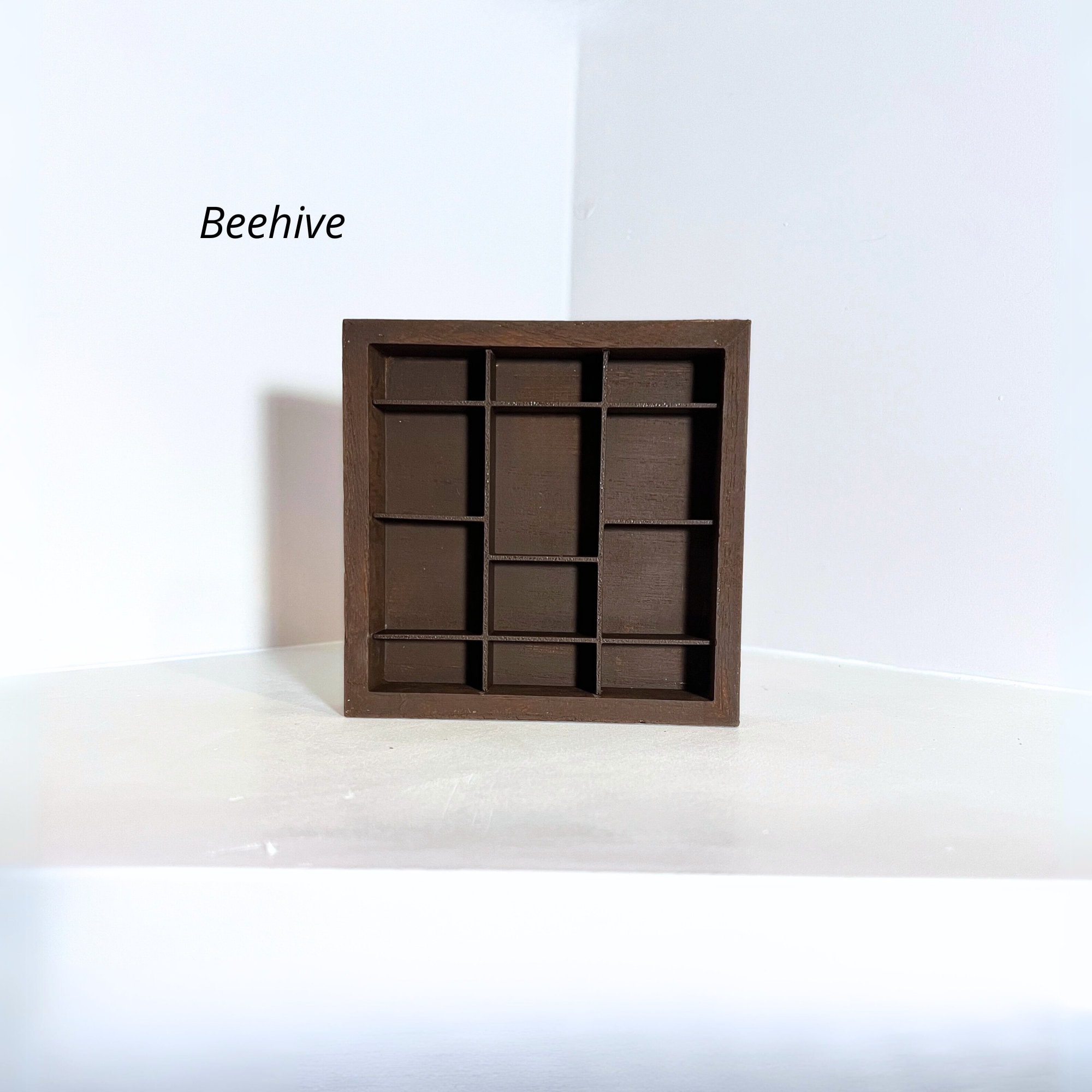 Handmade Mini Wooden Printer’s Tray: Crystal & Collectibles Shelf